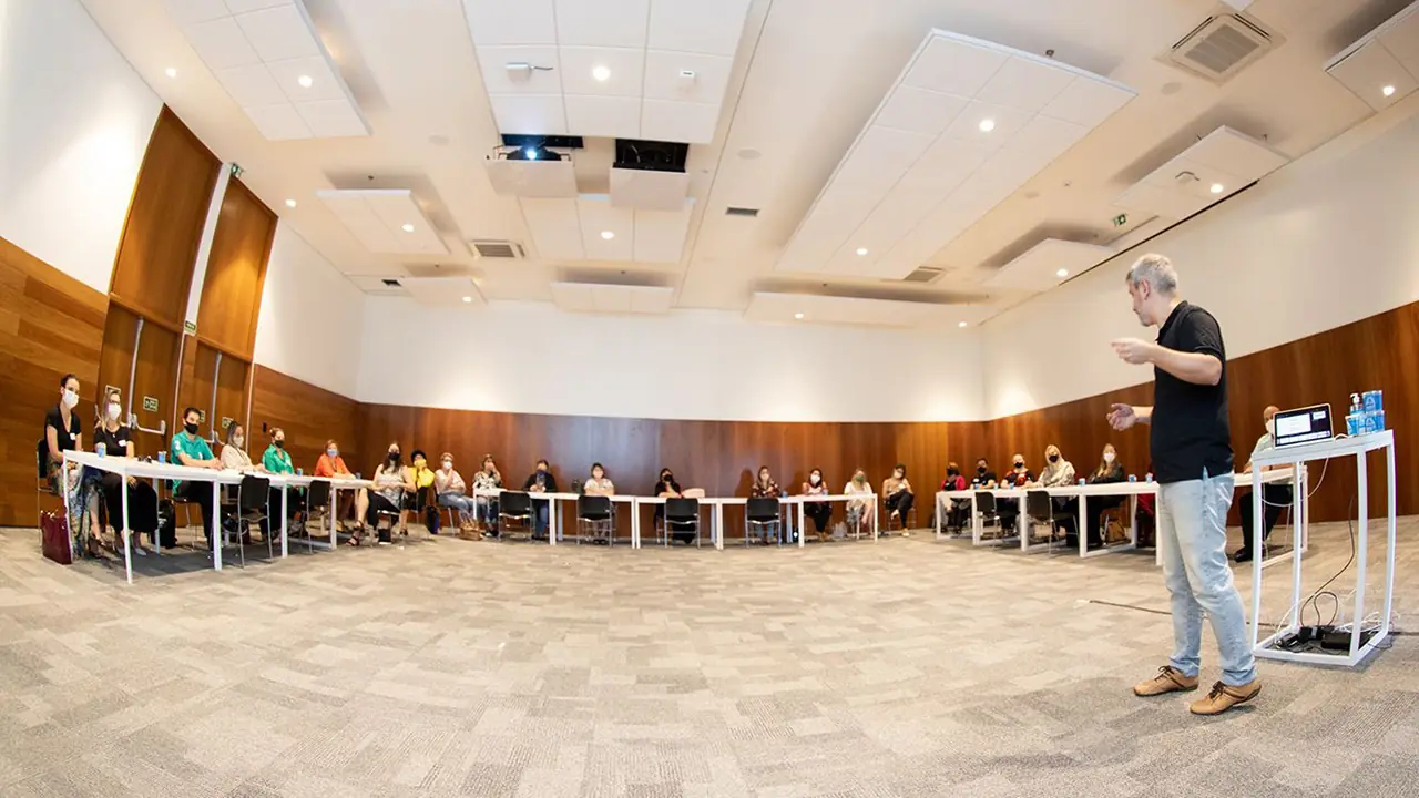 Quando um workshop é presencial, a proximidade física dos participantes cria as circunstâncias ideais para trocas altamente enriquecedoras. Não importa se as pessoas estão concentradas em um auditório ou reunidas em pequenos grupos: o fato de estarem juntas permite que suas expressões, tanto verbais quanto não-verbais, aconteçam de forma integral. Durante os workshops presenciais, sempre procuro conduzir as atividades com foco no equilíbrio entre teoria e prática, promover interações constantes entre os participantes e criar as condições ideais para transformar conhecimento em habilidades.